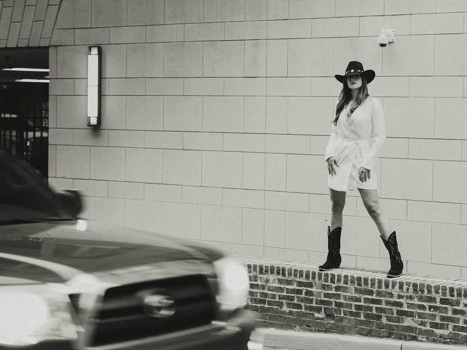 We shot everything around the Oxford Square, using the historic charm of the buildings and soft evening light as the perfect contrast to her bold styling. Reagan showed up with multiple looks featuring cowboy boots, a classic cowboy hat, and fringe details that moved effortlessly with every step. Each outfit felt like its own character - soft and romantic in one moment, then strong and editorial in the next.